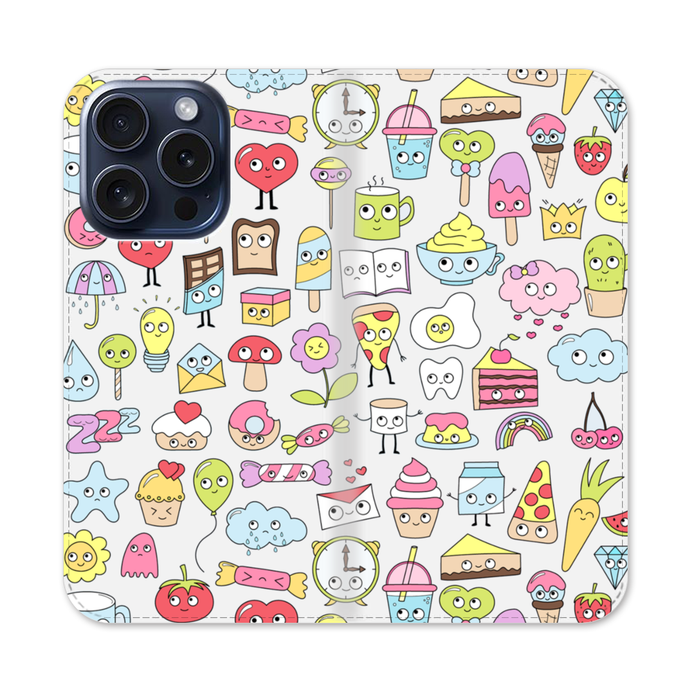 Karikatur Muster Apple iPhone 15 Pro Flip Case● Seitlich klappbar