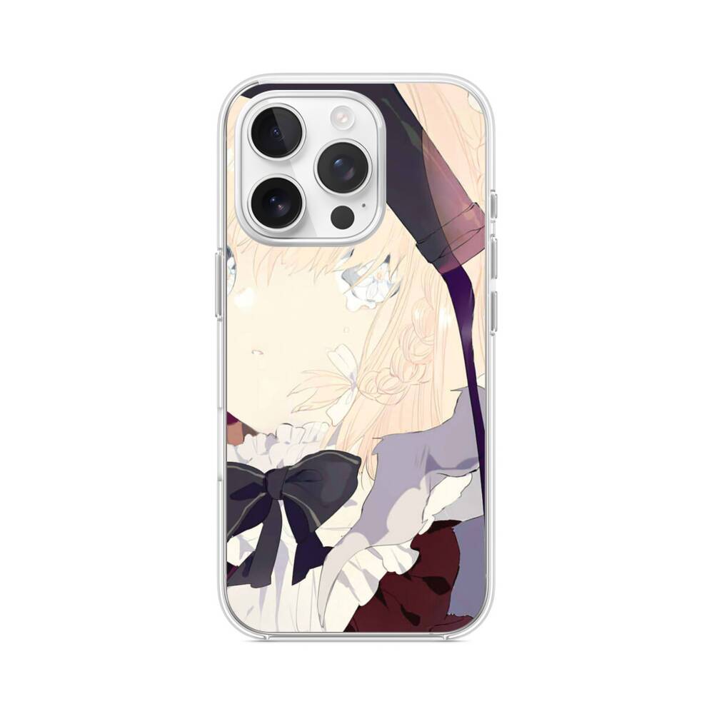 Anime Mädchen mit Blumen iPhone 15 Pro MagSafe‑kompatible Silikonhülle mit Kamera‑Kickstand● Sehr robust & langlebig
