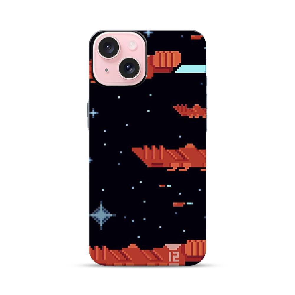 Verpixelte Raumschiffe Apple iPhone 15 Hybrid Case● Rundum bedruckbar