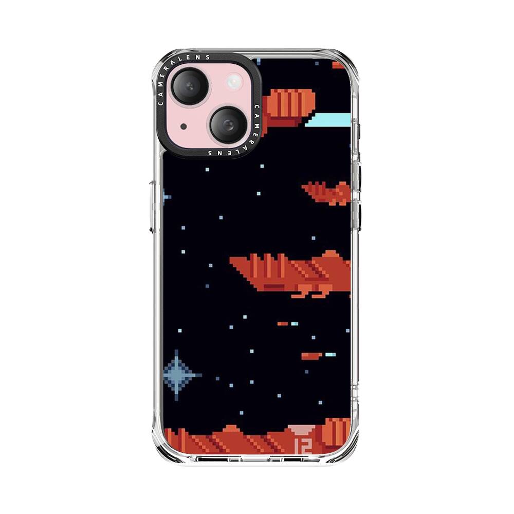 Verpixelte Raumschiffe Apple iPhone 15 Silikon Hülle● Sehr robust & langlebig