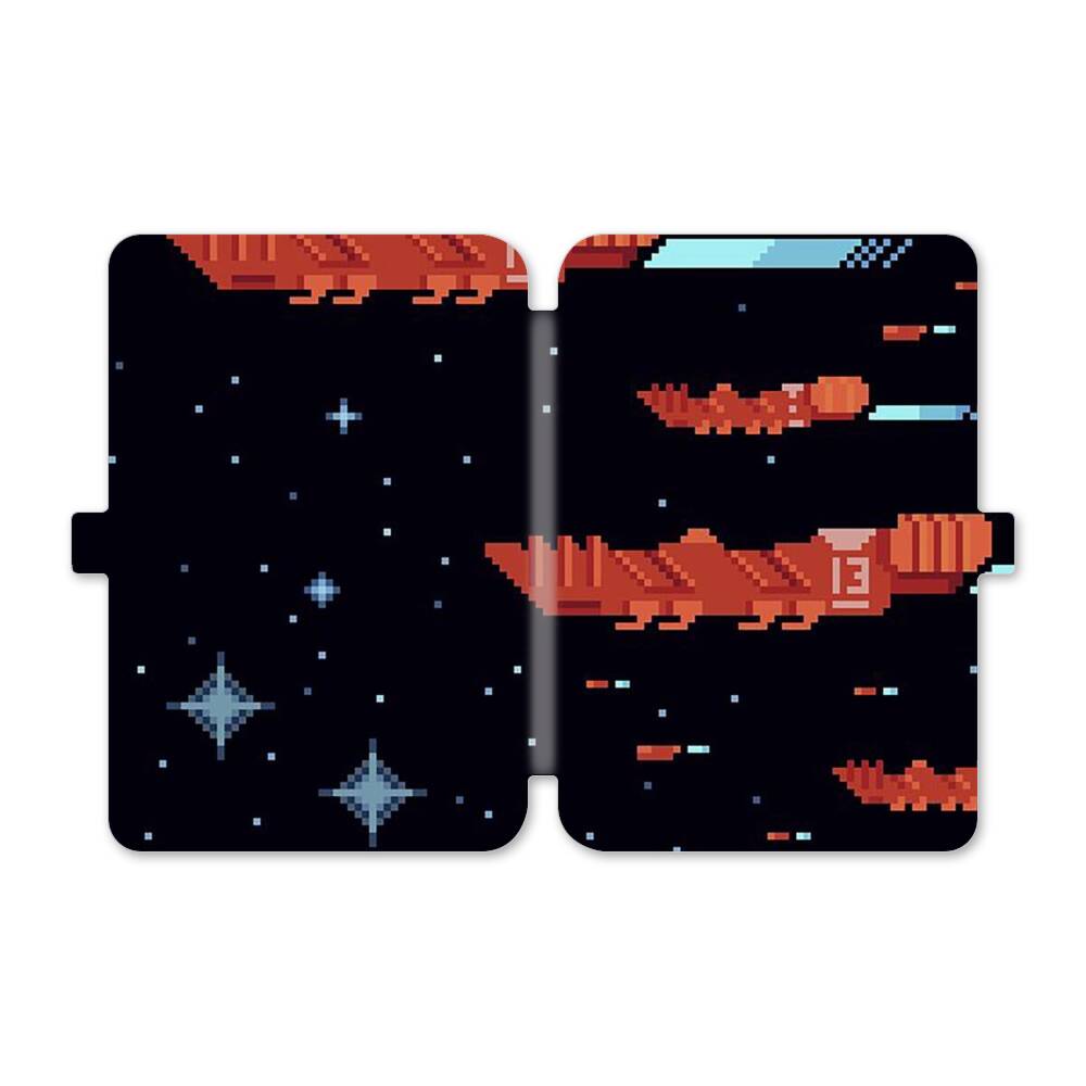 Verpixelte Raumschiffe Kindle Paperwhite 4 Flip Case● Seitlich klappbar