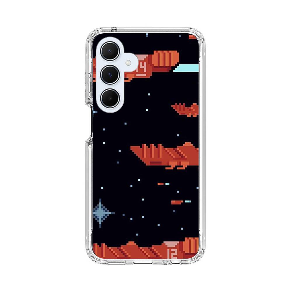 Verpixelte Raumschiffe Samsung Galaxy A55 (5G) Silikon Hülle● Sehr robust & langlebig