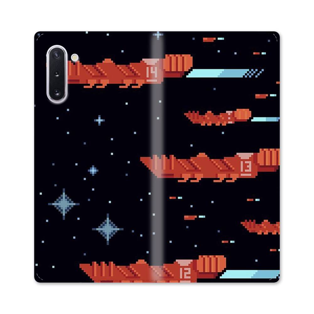 Verpixelte Raumschiffe Samsung Galaxy Note 10 Flip Case● Seitlich klappbar