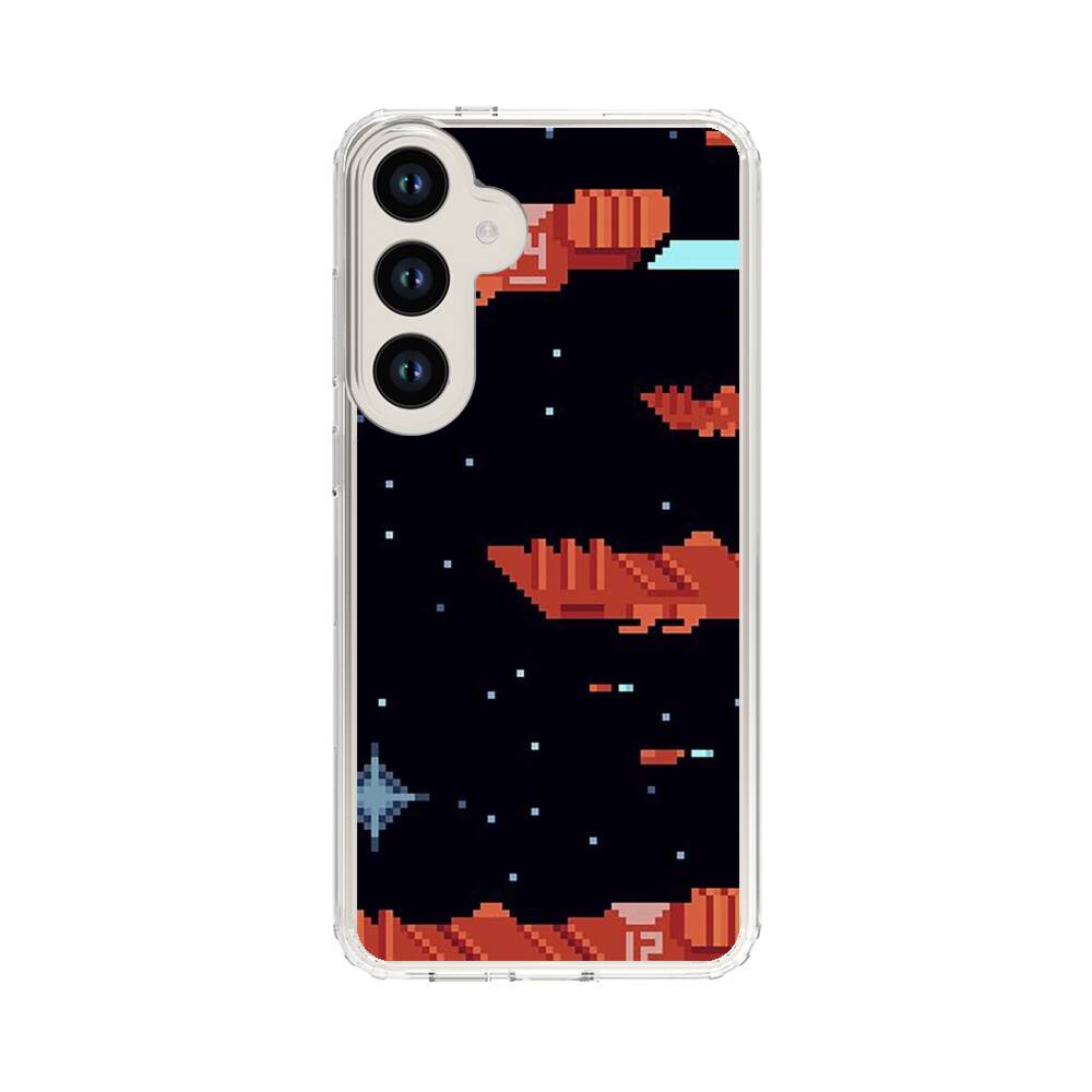 Verpixelte Raumschiffe Samsung Galaxy S24 Plus Silikon Hülle● Sehr robust & langlebig