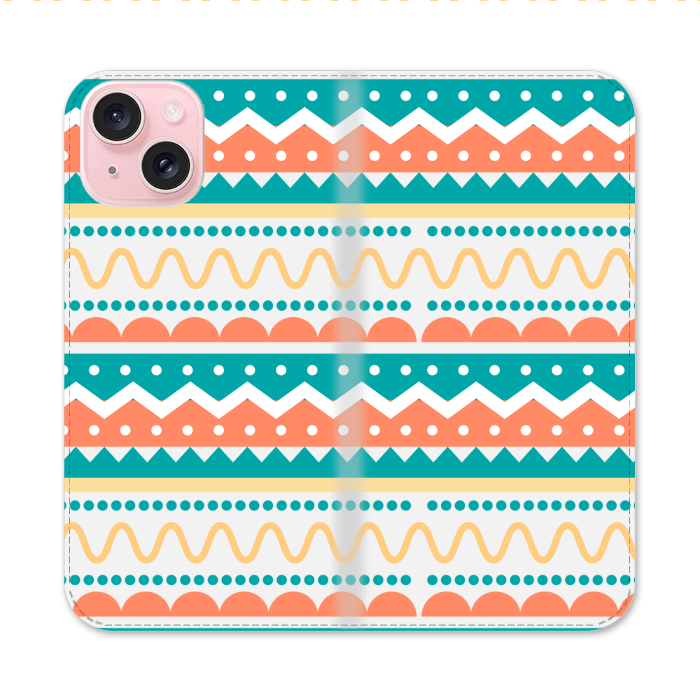 Bohemien Liniemuster Apple iPhone 15 Flip Case● Seitlich klappbar