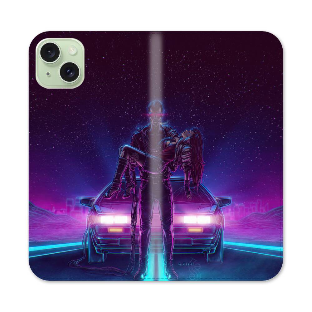 Neon Welle Ehepaar Apple iPhone 15 Plus Flip Case● Seitlich klappbar