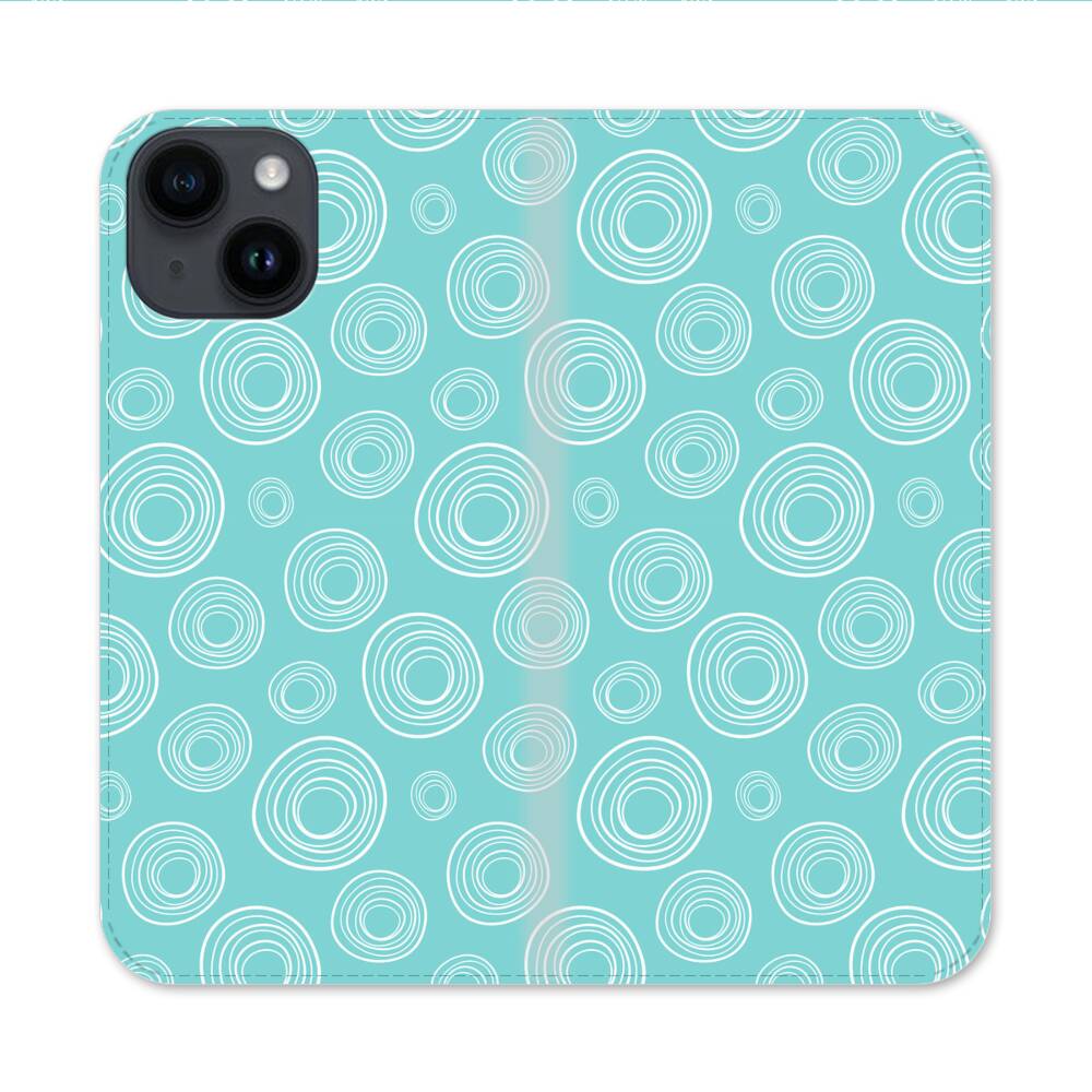 Hellblaue Kreise Apple iPhone 14 Flip Case● Seitlich klappbar