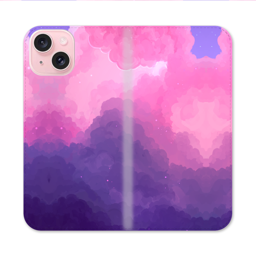Rosa Wolken Apple iPhone 15 Flip Case● Seitlich klappbar