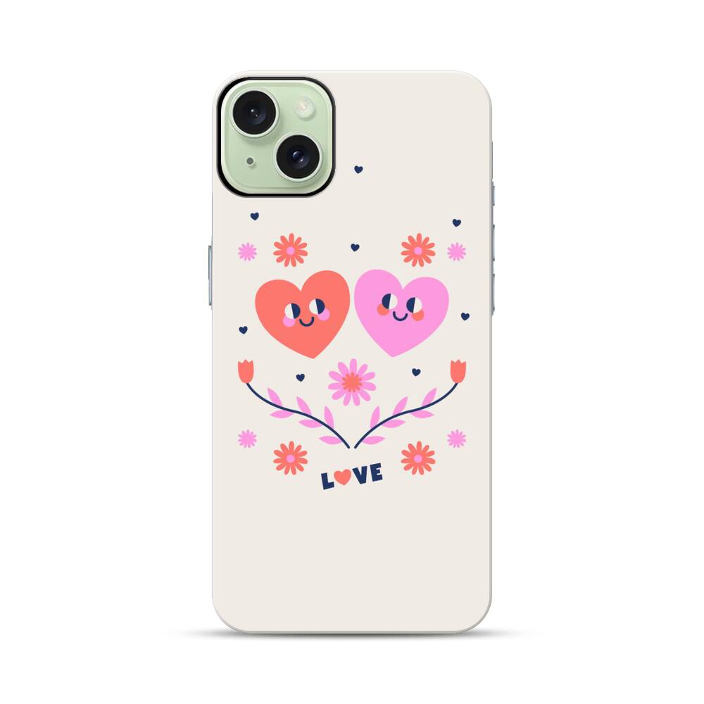 Gespiegeltes Herzmuster Apple iPhone 15 Plus Hybrid Case● Rundum bedruckbar