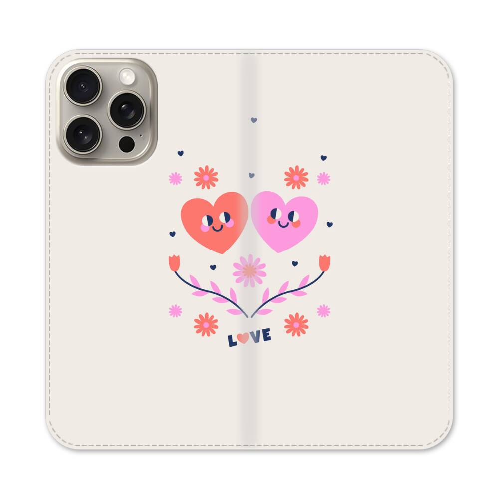 Gespiegeltes Herzmuster Apple iPhone 15 Pro Max Flip Case● Seitlich klappbar