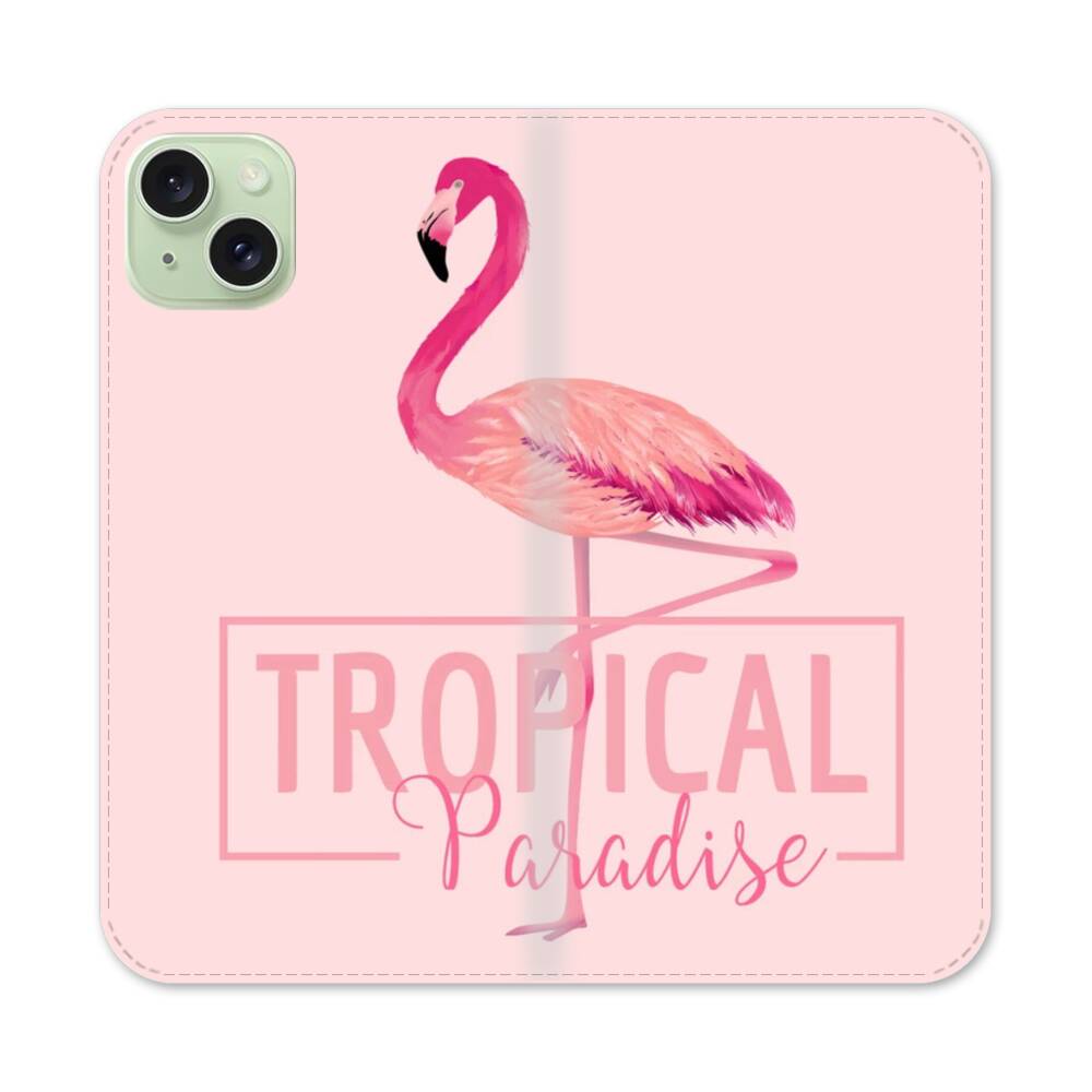 Tropischer Flamingo Apple iPhone 15 Plus Flip Case● Seitlich klappbar