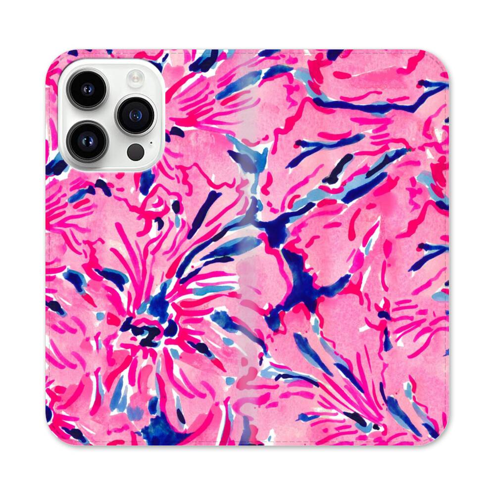Hot Pink Blüten Apple iPhone 14 Pro Flip Case● Seitlich klappbar