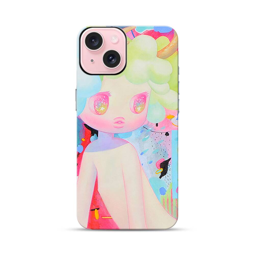 Kawaii neugierige Puppe Apple iPhone 15 Hybrid Case● Rundum bedruckbar