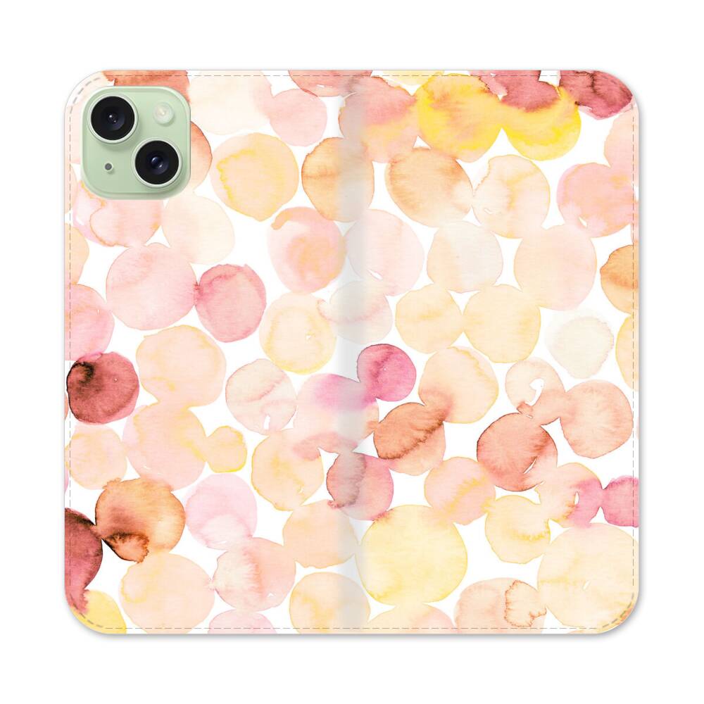 Pink Wasserfarben Punkten Apple iPhone 15 Plus Flip Case● Seitlich klappbar