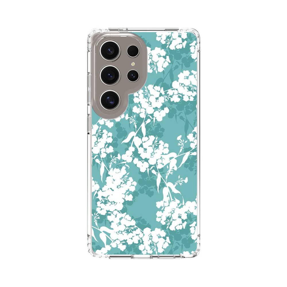 Grüne Blumenmuster Samsung Galaxy S25 Ultra Silikon Hülle● Sehr robust & langlebig