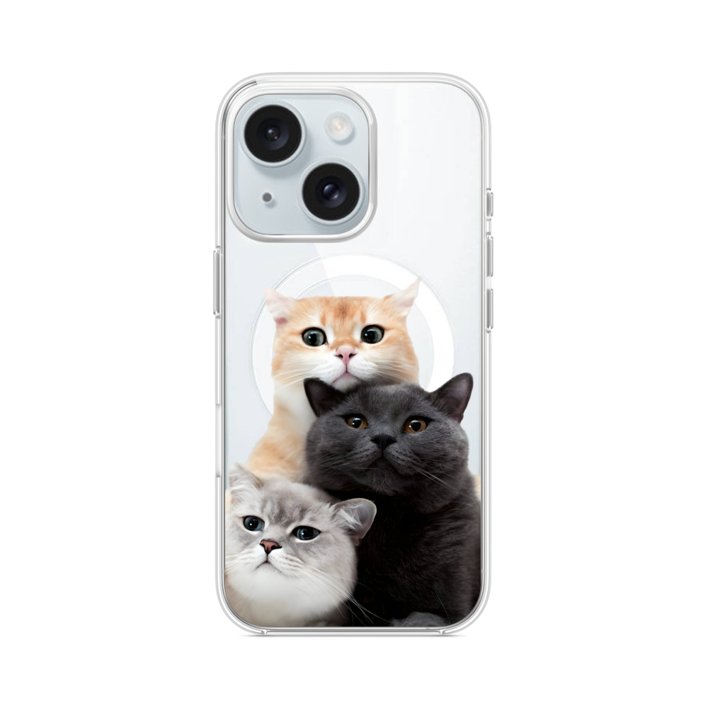 Drei Katzen iPhone 15 MagSafe‑kompatible Silikonhülle mit Kamera‑Kickstand● Sehr robust & langlebig