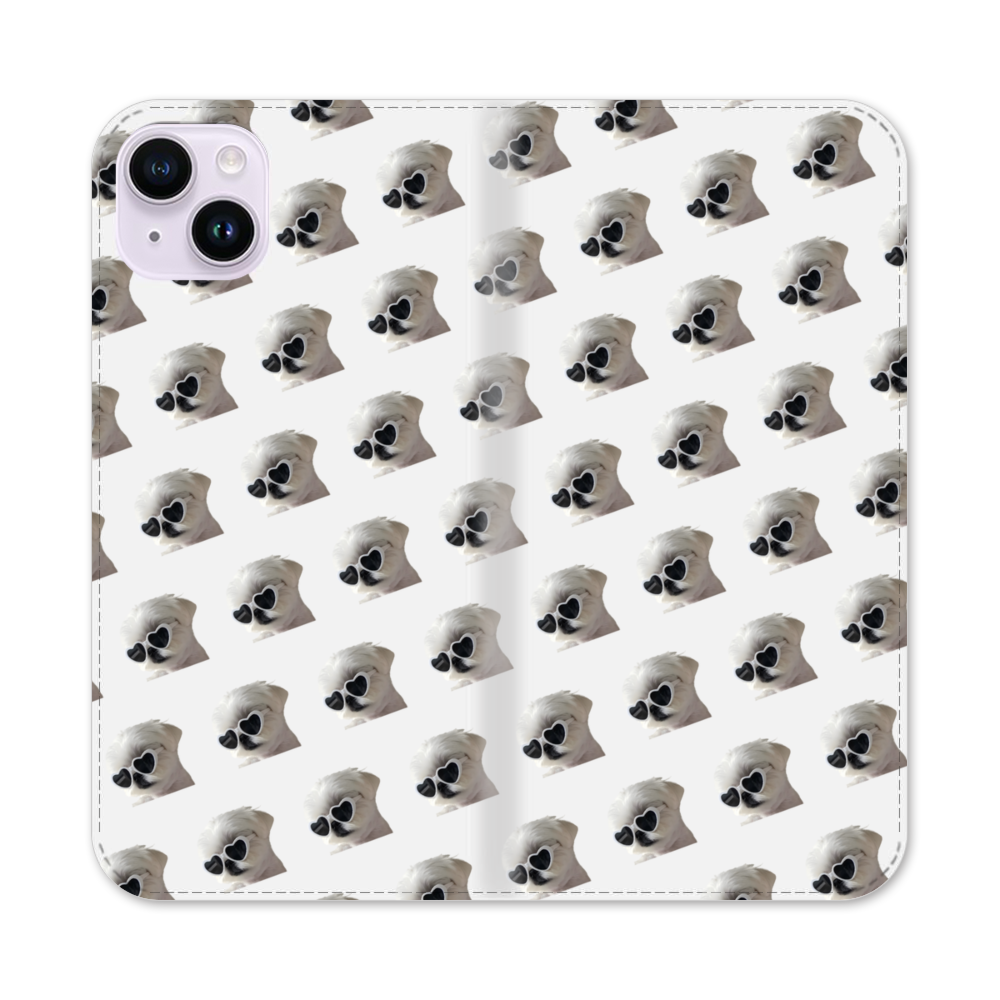 Hund mit Sonnenbrille Apple iPhone 14 Plus Flip Case● Seitlich klappbar