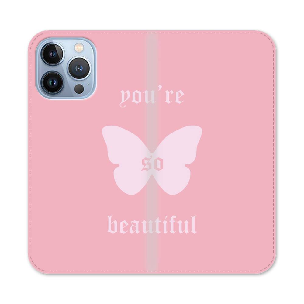 Pinker Schatten mit Schmetterling Apple iPhone 13 Pro Flip Case● Seitlich klappbar