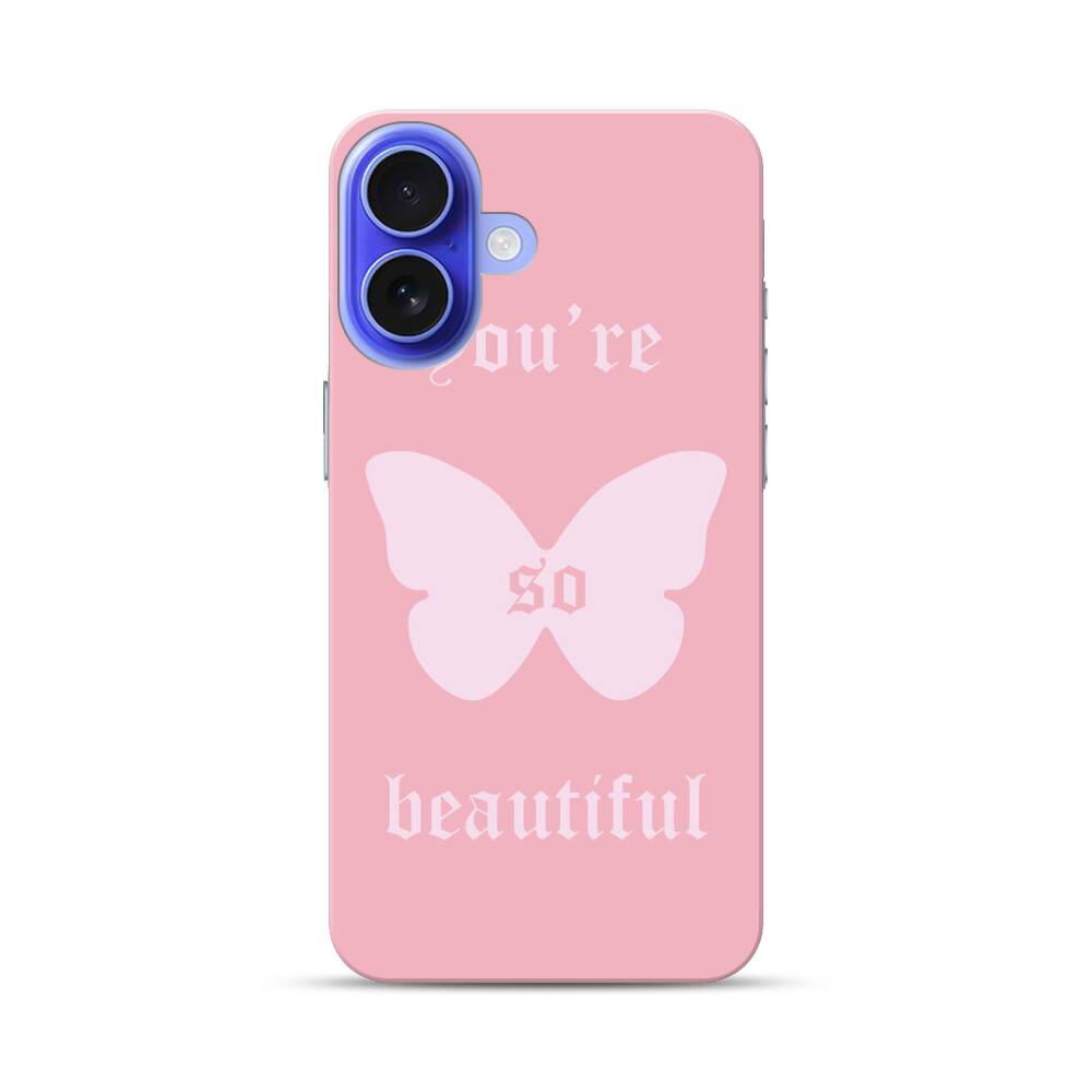 Pinker Schatten mit Schmetterling Apple iPhone 16 Hülle● Rundum bedruckbar