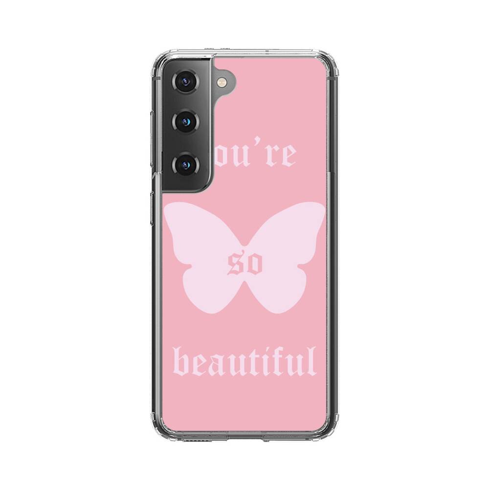 Pinker Schatten mit Schmetterling Samsung Galaxy S22 Silikon Hülle● Sehr robust & langlebig