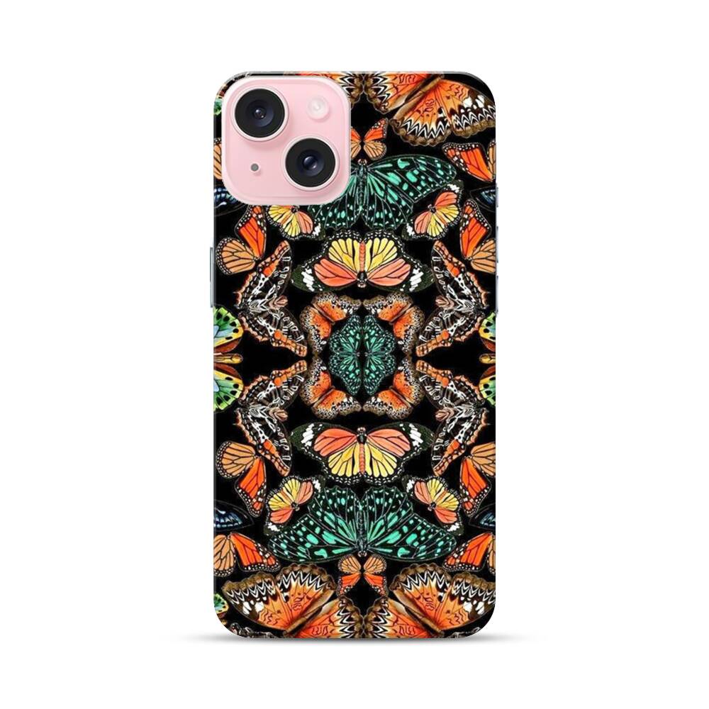 Gespiegelte Schmetterling Apple iPhone 15 Hülle● Rundum bedruckbar