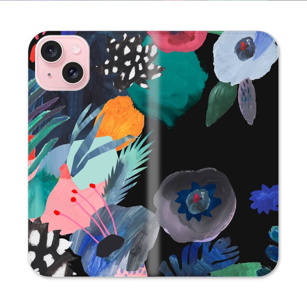 Dunkle Blumen Apple iPhone 15 Flip Case● Seitlich klappbar