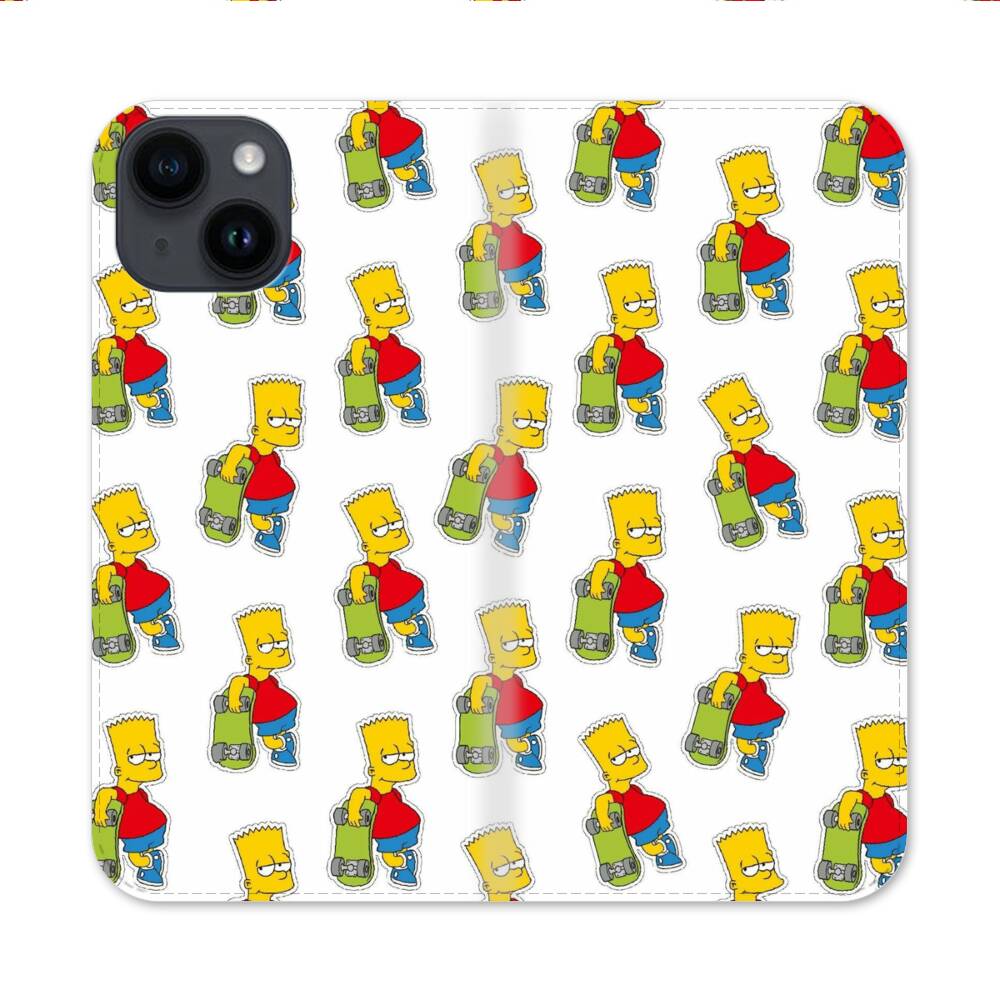 Simpsons mit Skateboard Apple iPhone 14 Flip Case● Seitlich klappbar