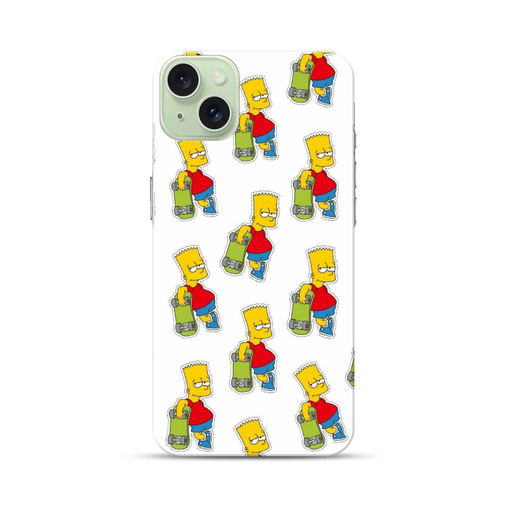 Simpsons mit Skateboard Apple iPhone 15 Plus Hülle● Rundum bedruckbar
