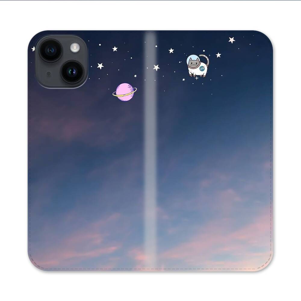 Weltraumkatze Apple iPhone 14 Flip Case● Seitlich klappbar