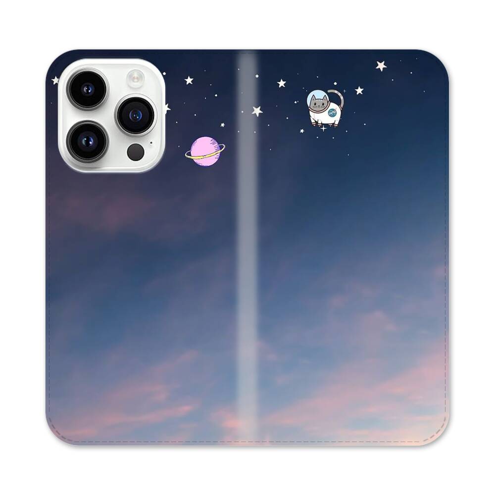 Weltraumkatze Apple iPhone 14 Pro Flip Case● Seitlich klappbar