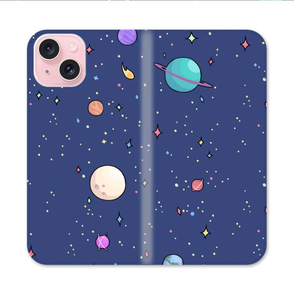 Planeten Graffitis Apple iPhone 15 Flip Case● Seitlich klappbar