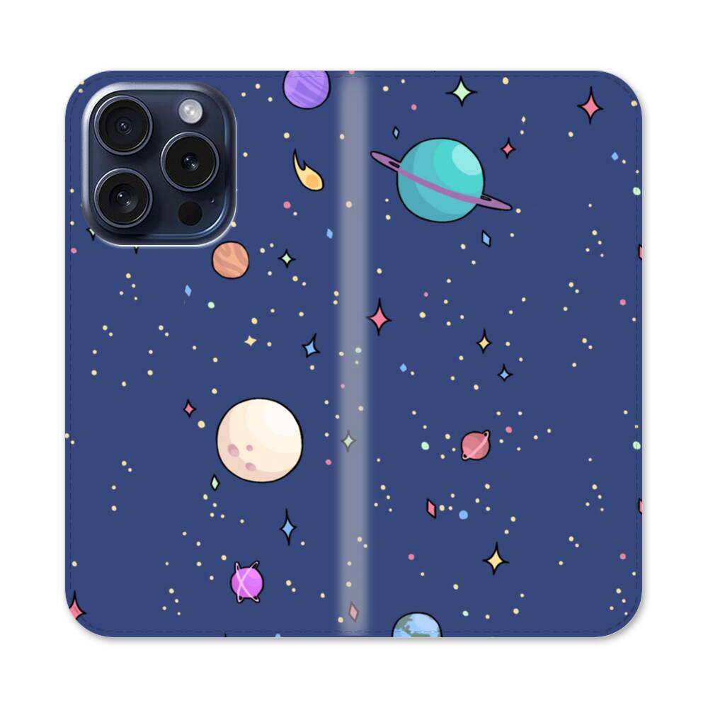 Planeten Graffitis Apple iPhone 15 Pro Flip Case● Seitlich klappbar
