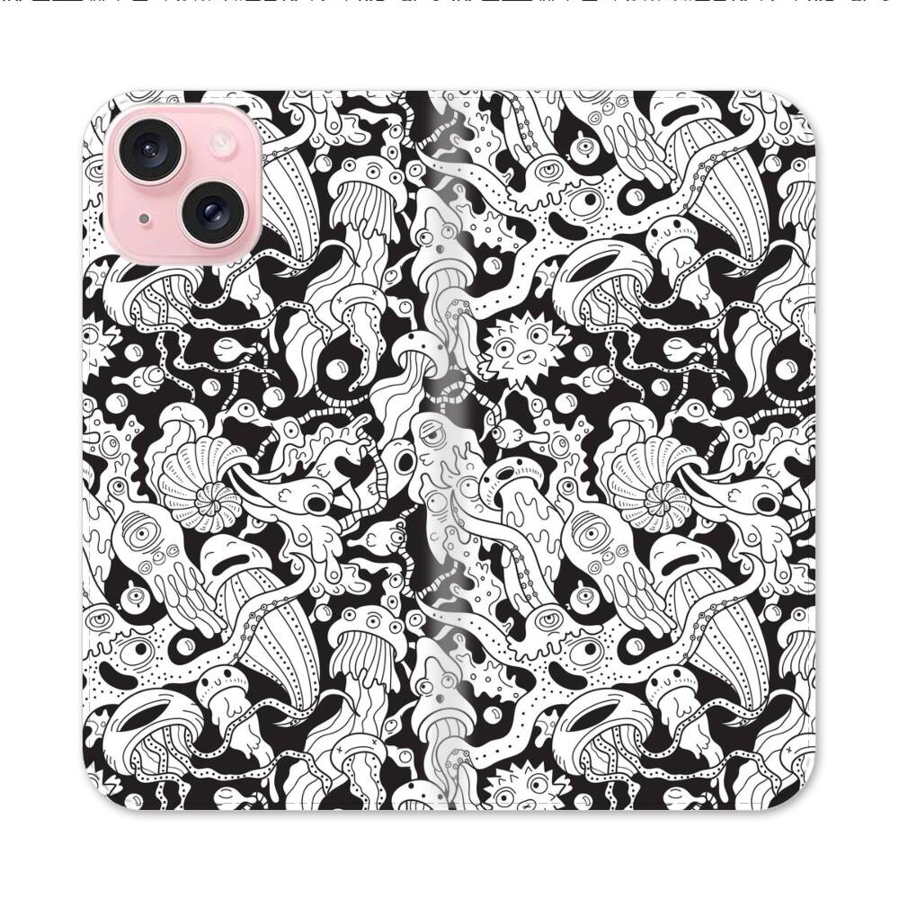 Verschiedene Meereslebewesen Apple iPhone 15 Flip Case● Seitlich klappbar