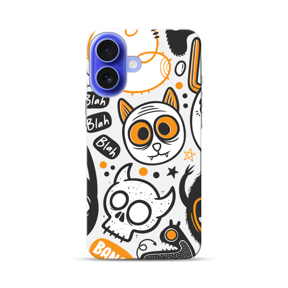 Katze und Schädel Apple iPhone 16 Hülle● Rundum bedruckbar