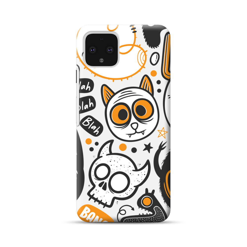 Katze und Schädel Google Pixel 4 Hülle● Rundum bedruckbar