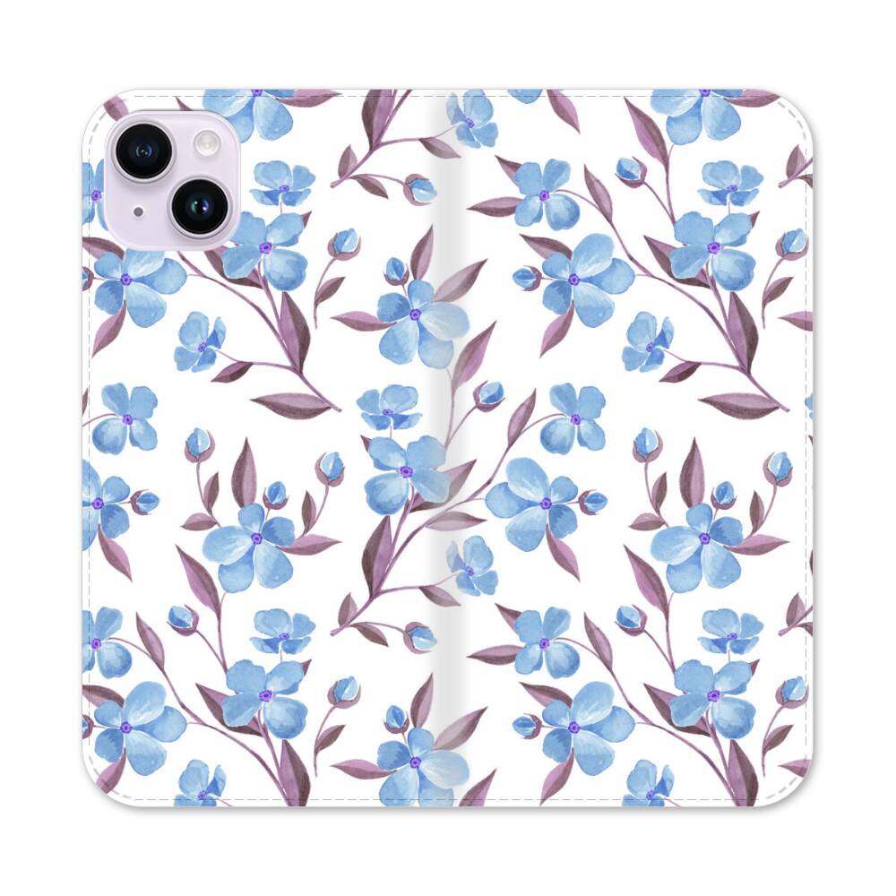 Indigo Blütenblätter Apple iPhone 14 Plus Flip Case● Seitlich klappbar
