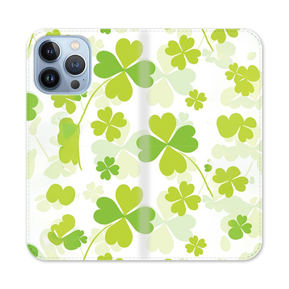 Grüner Klee Apple iPhone 13 Pro Flip Case● Seitlich klappbar