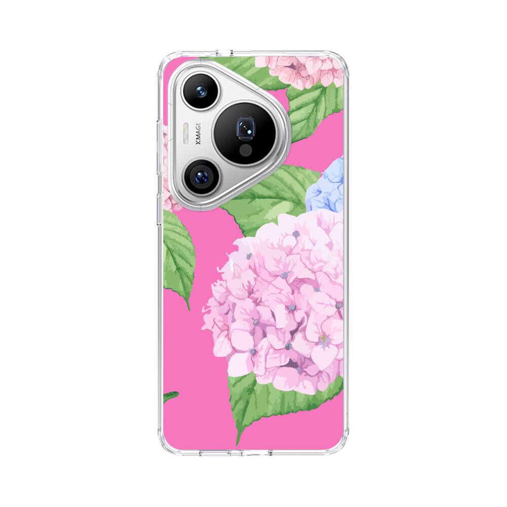 Pinke Hortensien Huawei Pura 70 Pro Plus Silikon Hülle● Sehr robust & langlebig