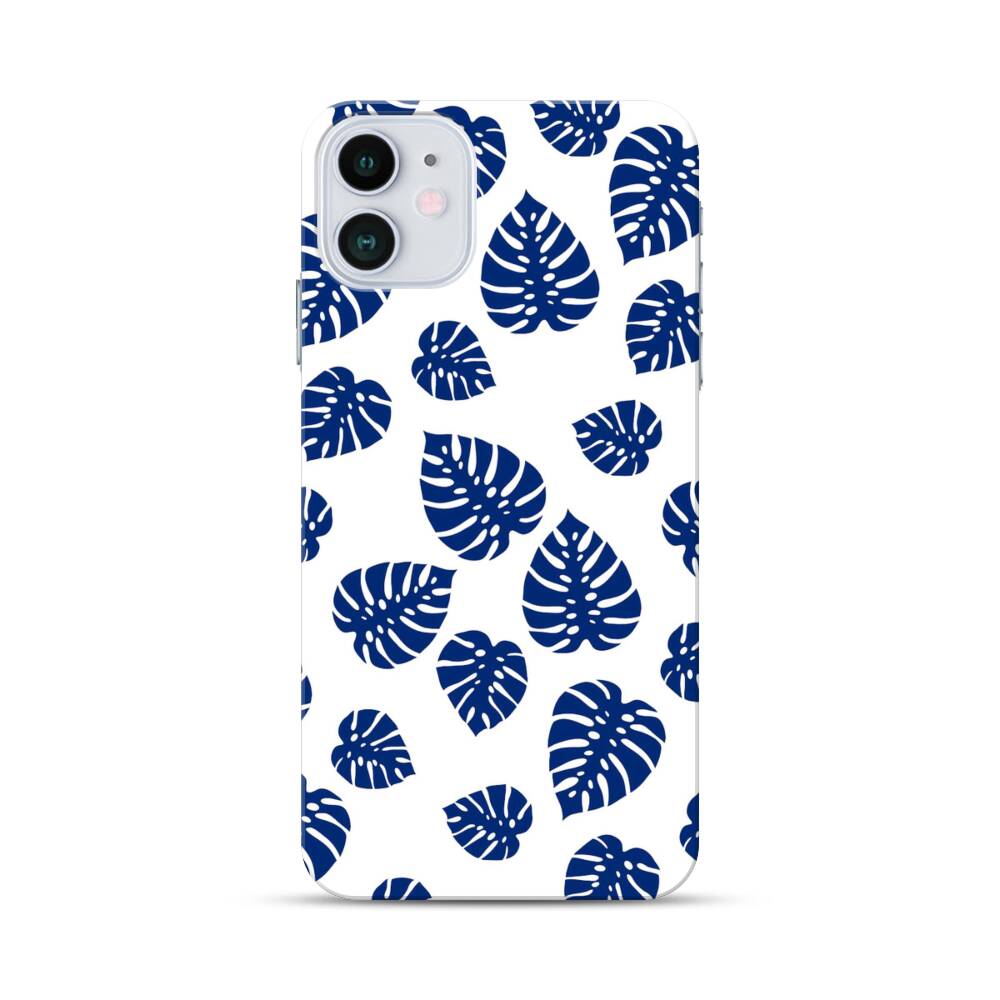 Blaue Blätter Apple iPhone 12 Hülle● Rundum bedruckbar