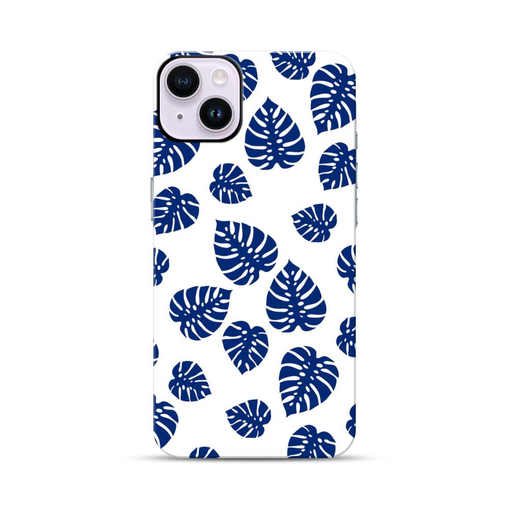 Blaue Blätter Apple iPhone 14 Plus Hybrid Case● Rundum bedruckbar