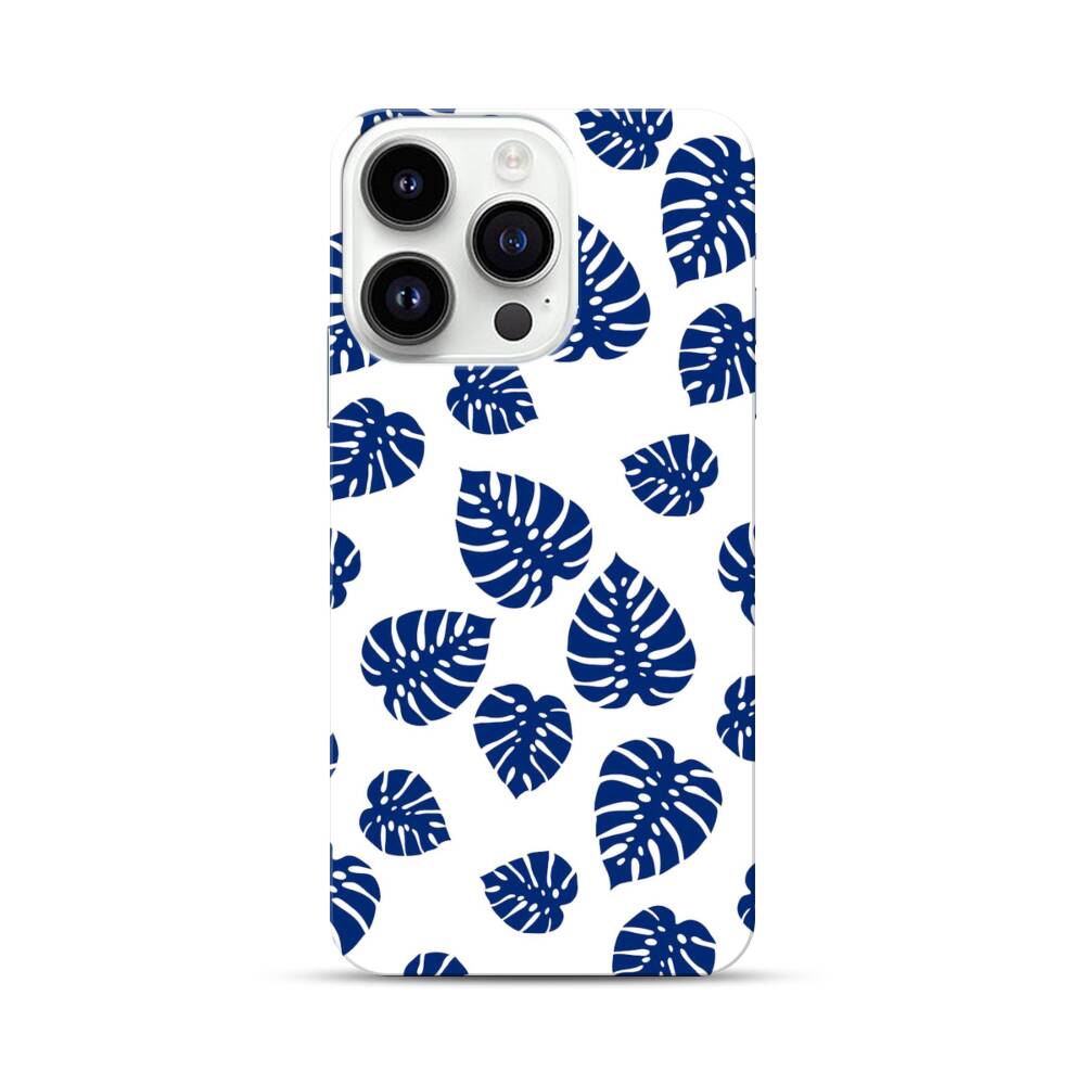 Blaue Blätter Apple iPhone 14 Pro Hülle● Rundum bedruckbar