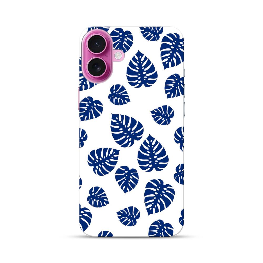 Blaue Blätter Apple iPhone 16 Plus Hülle● Rundum bedruckbar