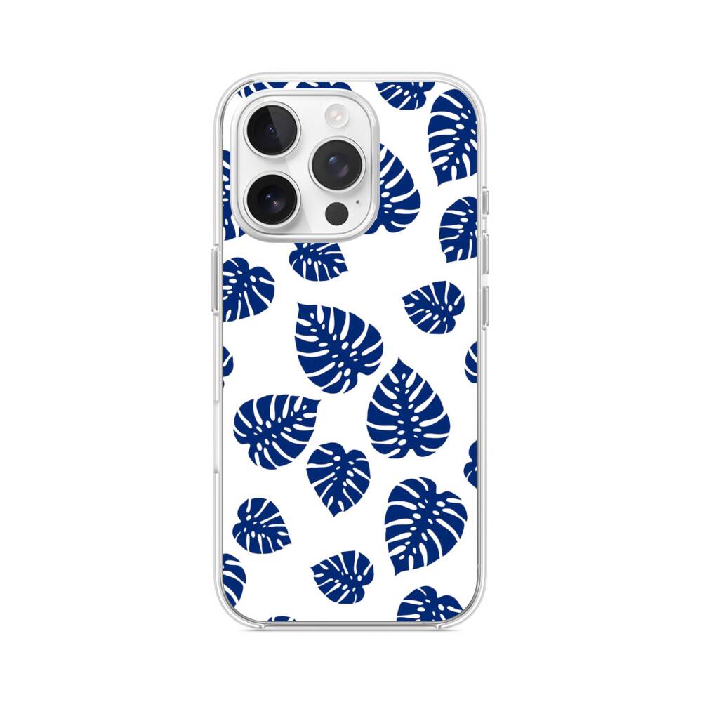Blaue Blätter iPhone 15 Pro MagSafe‑kompatible Silikonhülle mit Kamera‑Kickstand● Sehr robust & langlebig