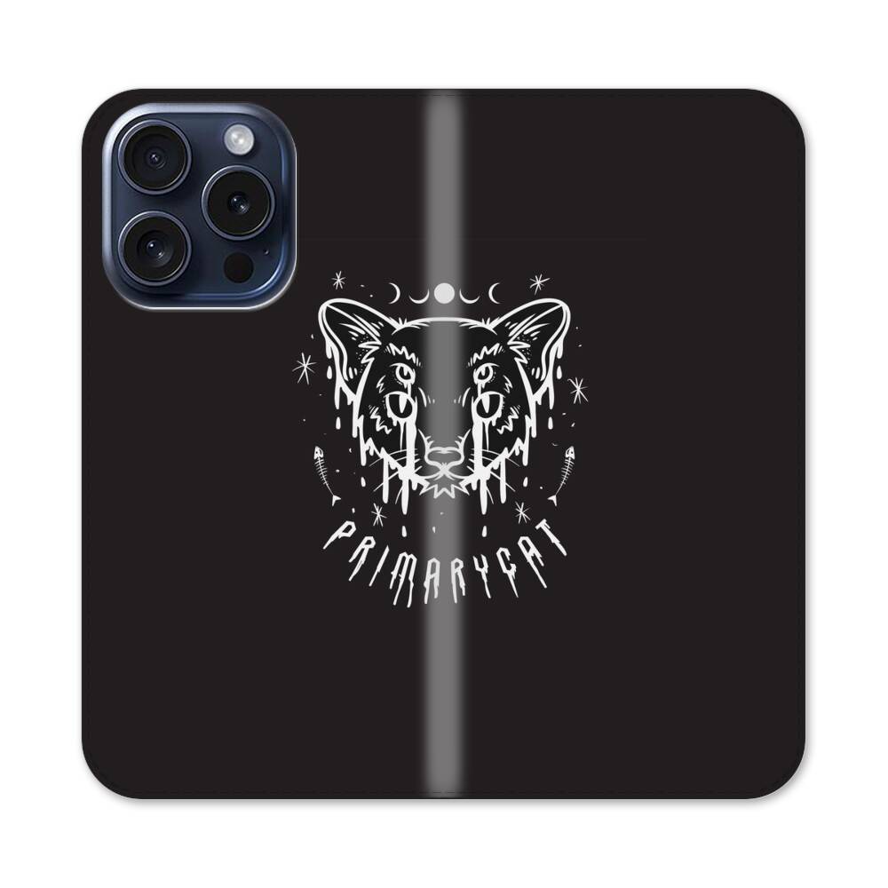 Schwarze Katze Apple iPhone 15 Pro Flip Case● Seitlich klappbar