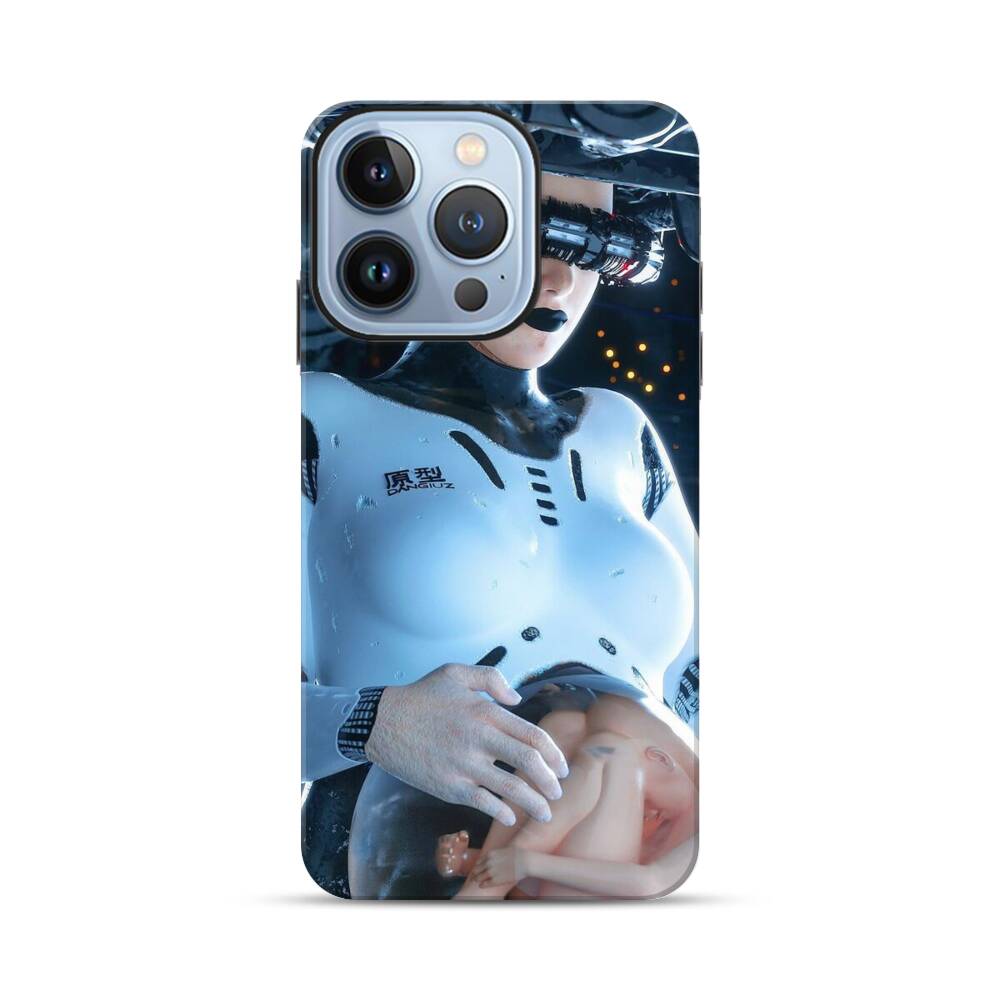Schwangere Roboterin Apple iPhone 13 Pro Hybrid Case● Rundum bedruckbar