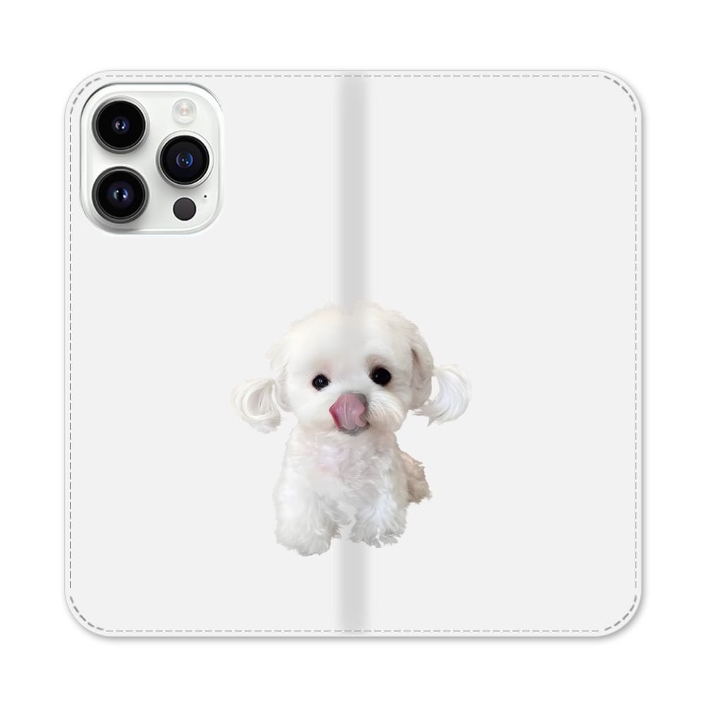 Weißer Hundewelpe Apple iPhone 14 Pro Max Flip Case● Seitlich klappbar