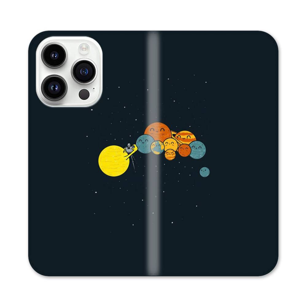 Lustige Planeten Apple iPhone 14 Pro Flip Case● Seitlich klappbar