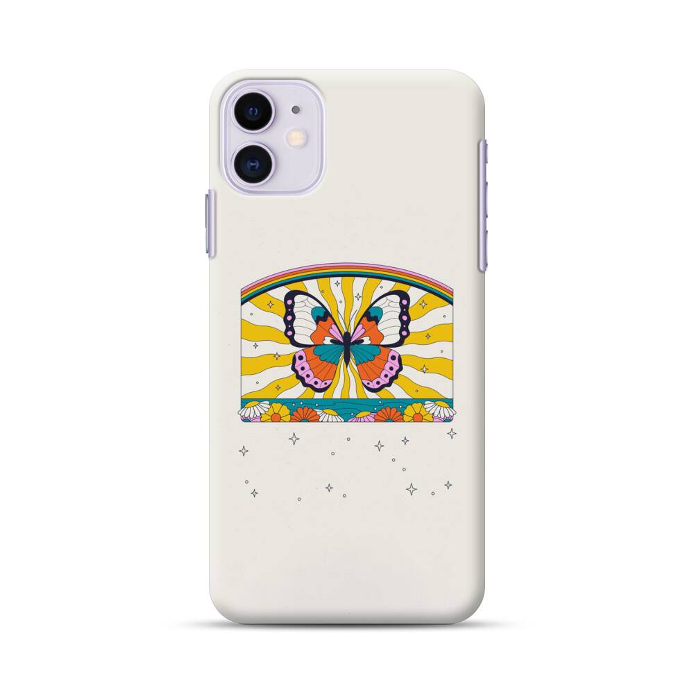 Schmetterling auf dem Regenbogen-Hintergrund Apple iPhone 11 Hülle● Rundum bedruckbar