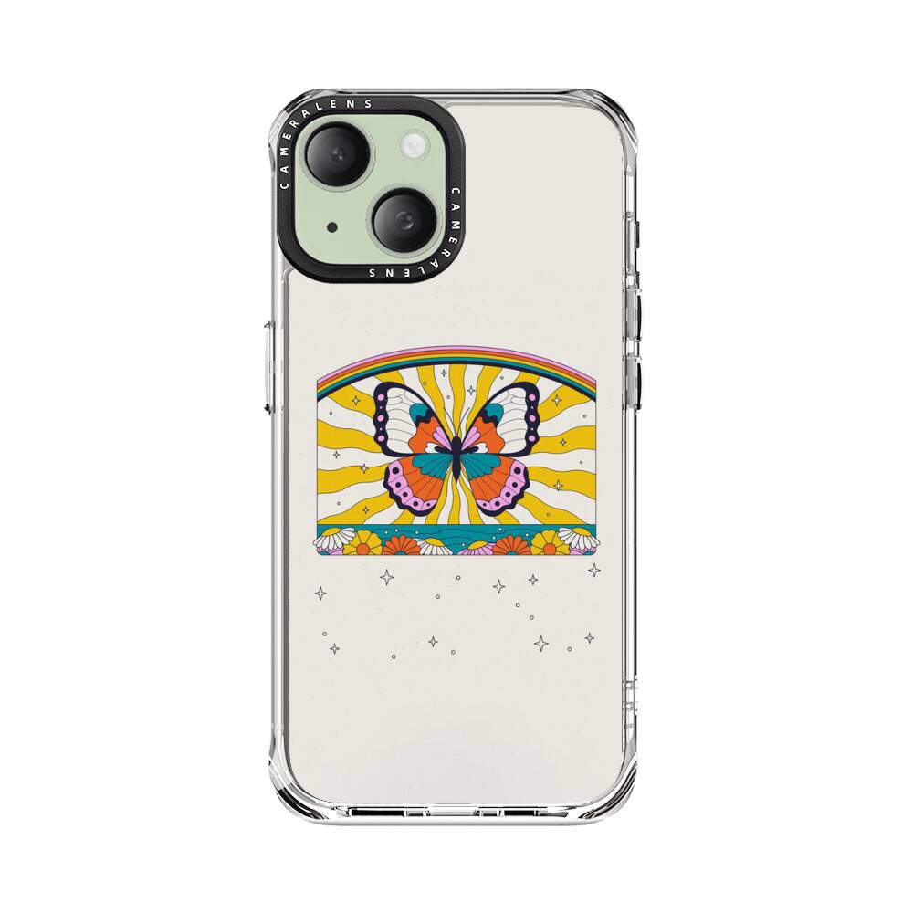 Schmetterling auf dem Regenbogen-Hintergrund Apple iPhone 15 Plus Silikon Hülle● Sehr robust & langlebig