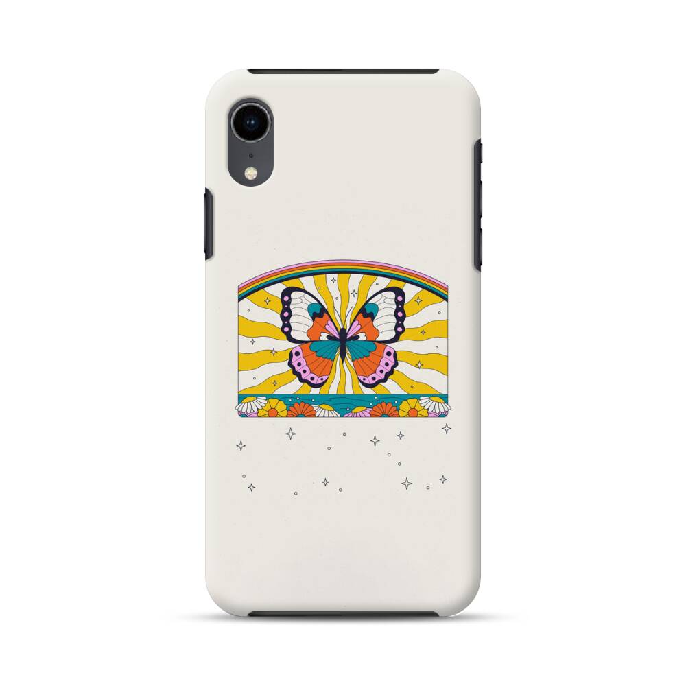 Schmetterling auf dem Regenbogen-Hintergrund iPhone XR Hybrid Hülle● Rundum bedruckbar